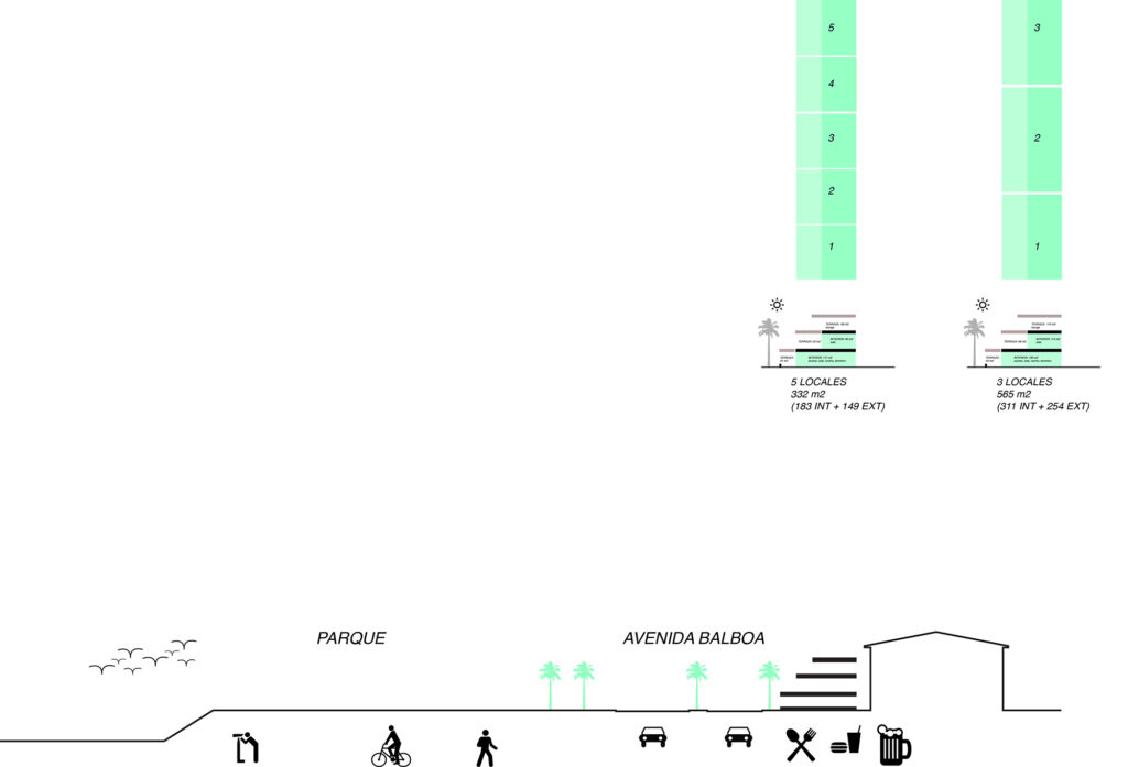 El solar situado en la Avenida Balboa en la ciudad de Panamá goza de una situación inmejorable. La parcela se enfrenta a la Avenida Balboa, eje turístico y pasante de la ciudad. Tiene la característica de apoyarse en el Teatro Metro en su limite norte-oeste y abrirse hacia las vistas sobre la cinta costera el paseo marítimo y al mar en su limite sur-este. Respetando los limites de construcción, el total de metros cuadrados de ocupación en planta baja son 615 m2.