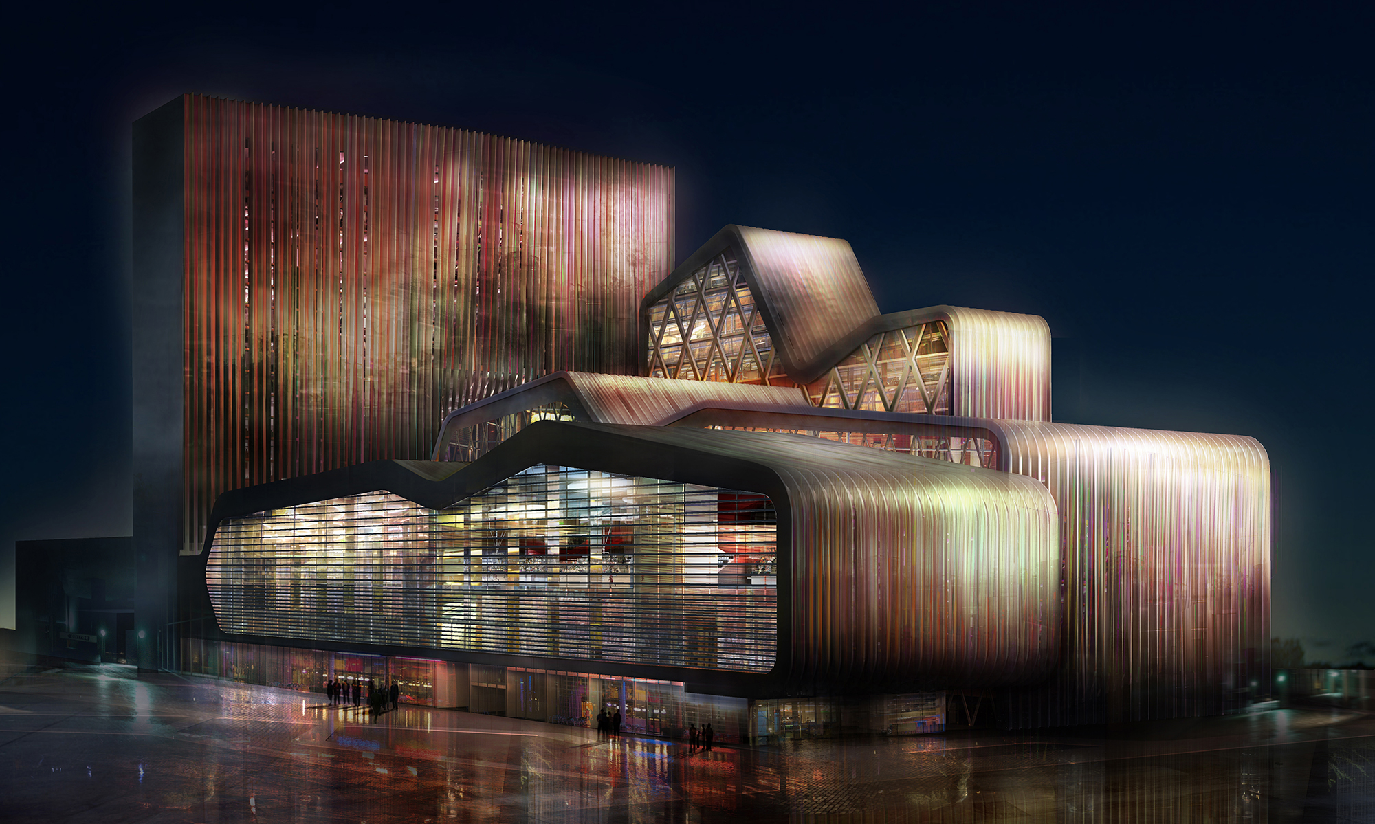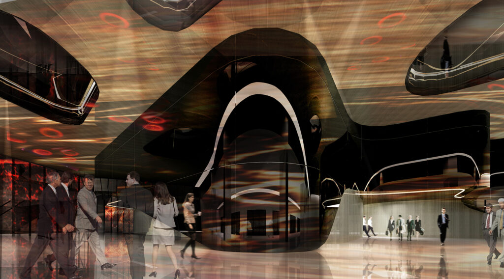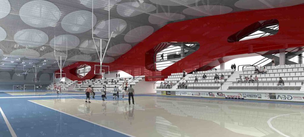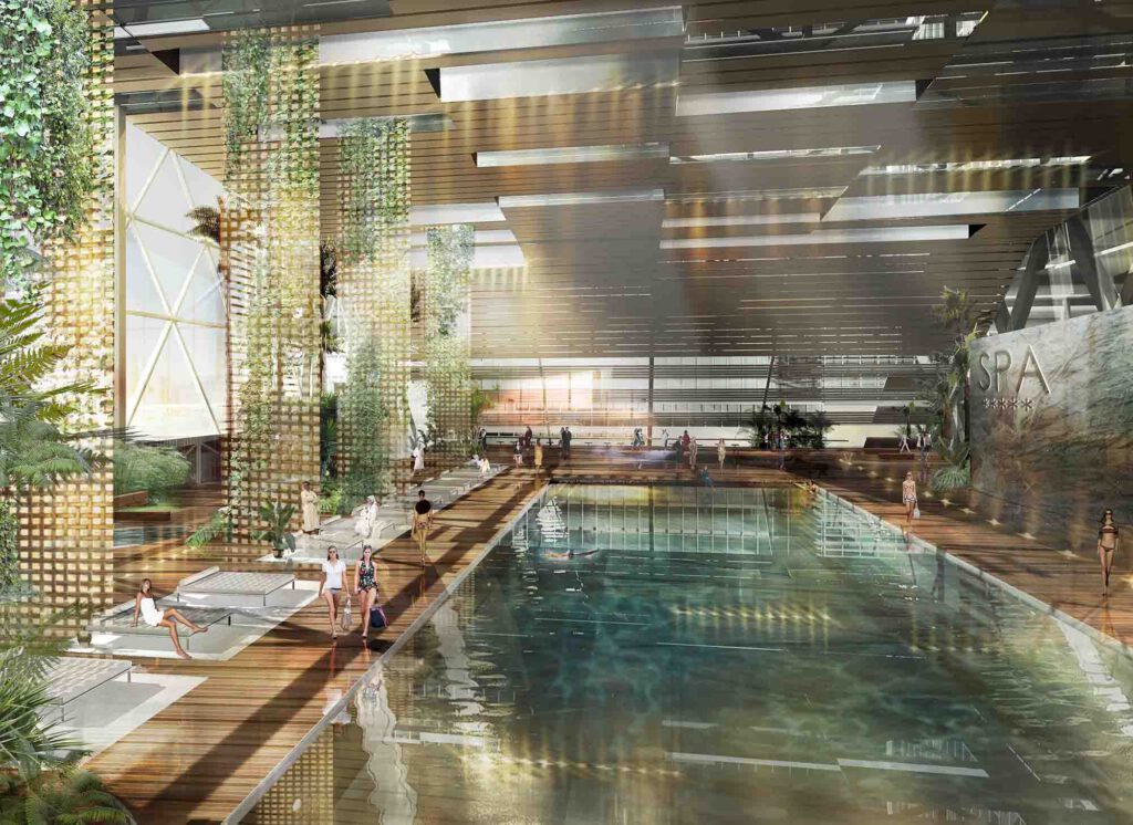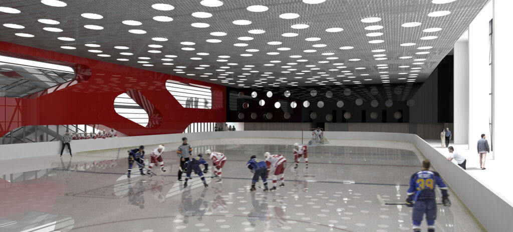 El resort de San Petersburgo contiene un hotel con 300 habitaciones, un centro de Convenciones y 23 despachos para reuniones. También tiene un gran centro de deportes, un edificio de oficinas, un gran aparcamiento y un helipuerto. El edificio crea una silueta de reconciliación en los límites de la ciudad. La sombra de la construcción simula un paisaje artificial. La membrana con sus diferentes ondulaciones acumula la nieve que está presente en toda la ciudad.