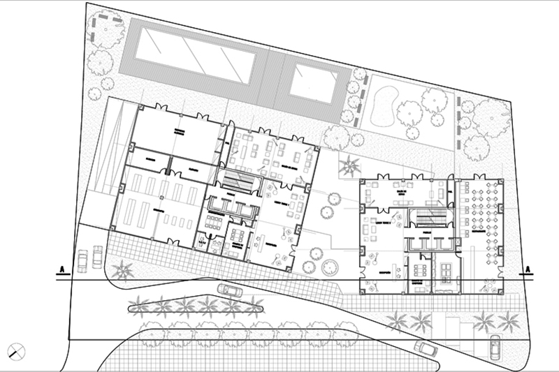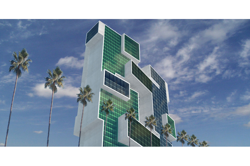 Usamos el argumento del cactus como una referencia conceptual que puede usarse comercialmente, pero sugiere una forma de lidiar con el desvío de la atención sobre los argumentos, reforzando la sensación de verticalidad y colocándolos nuevamente con los elementos que descienden, y nos ayuda a equilibrarlo con elementos bajos y horizontales, como ventanas horizontales y conectores.