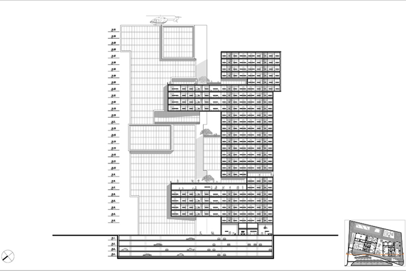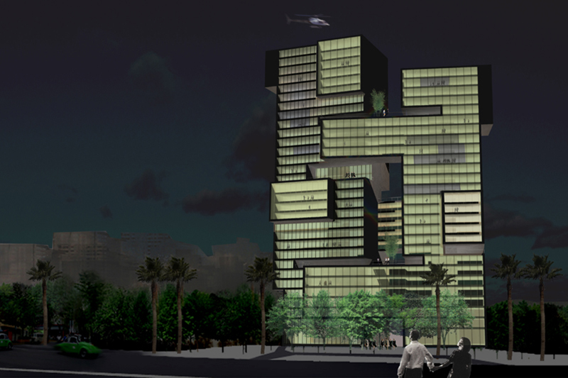 Los movimientos causan que los 2 edificios con sus respectivos volúmenes estén juntos, como un abrazo entre las torres, crean condiciones para la escultura, y una pieza única de un proyecto como entendemos que la marca está buscando.