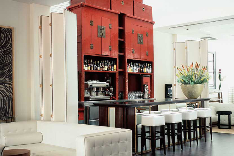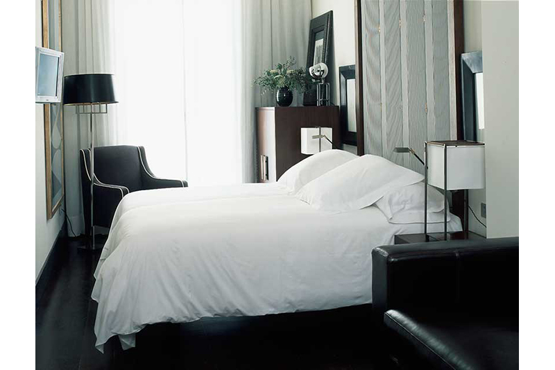 Inaugurado en XXXX, el hotel Pulitzer sigue siendo una de los hoteles de diseño de más éxito en Barcelona. La luz natural invade todas las plantas, gracias a las ventanas exteriores y al enorme lucernario que ilumina las zonas comunes. En la planta baja, un sereno jardín interior conecta el restaurante y el vestíbulo, un espacio compuesto que es célebre por sus reuniones informales en los sofás de piel de inspiración art deco. Un impresionante armario imperial chino lacado en rojo domina la zona del bar, y los suelos oscuros de madera noble realzan la sensación de «oriente se encuentra con occidente». En todo el hotel, el atrevido arte abstracto, las estanterías de libros y la configuración intimista del mobiliario proporcionan una sensación de privacidad y confort.