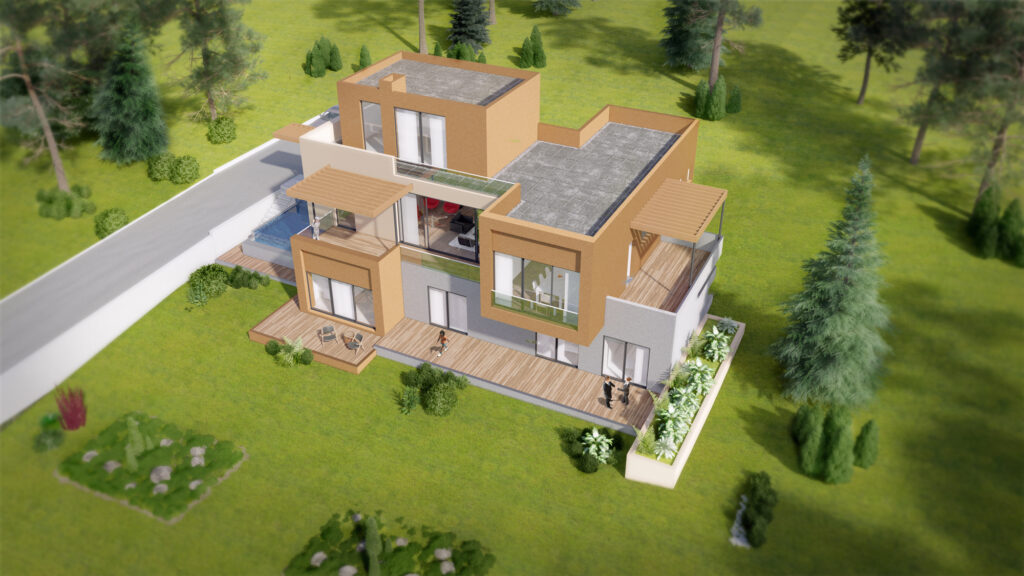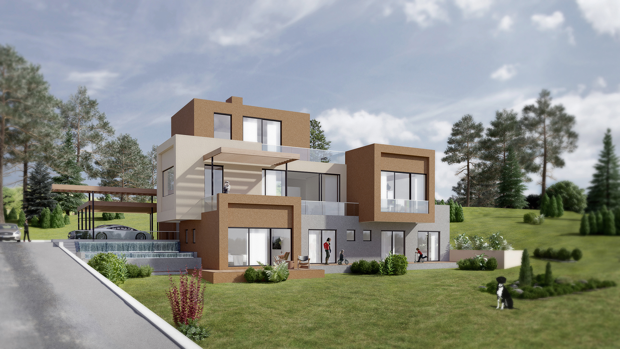 Propuesta de 3 tipologías de casas para el de desarrollo de una urbanización en el bosque de Yerbabuena. El solar con fuerte declive estará acondicionado para recibir en su parte baja los diferentes elementos de programa colectivos tal como la recepción, un pool-house, pistas de tenis etc. En la parte superior del solar, con las vistas más prestigiosas, se desarrollaran villas de 3 tipologías distintas, desde 250 m2 hasta 350 m2. La pendiente del terreno obliga a repensar las tipologías de las casas jugando con diferente niveles para organizar los espacios. Zona de acceso, zona social, habitaciones etc. se organizan de manera distinta según se accede al lote desde su parte superior o inferior. El interior de las casas privilegia las vistas, poniendo el paisaje como actor principal de cada espacio de las casas.